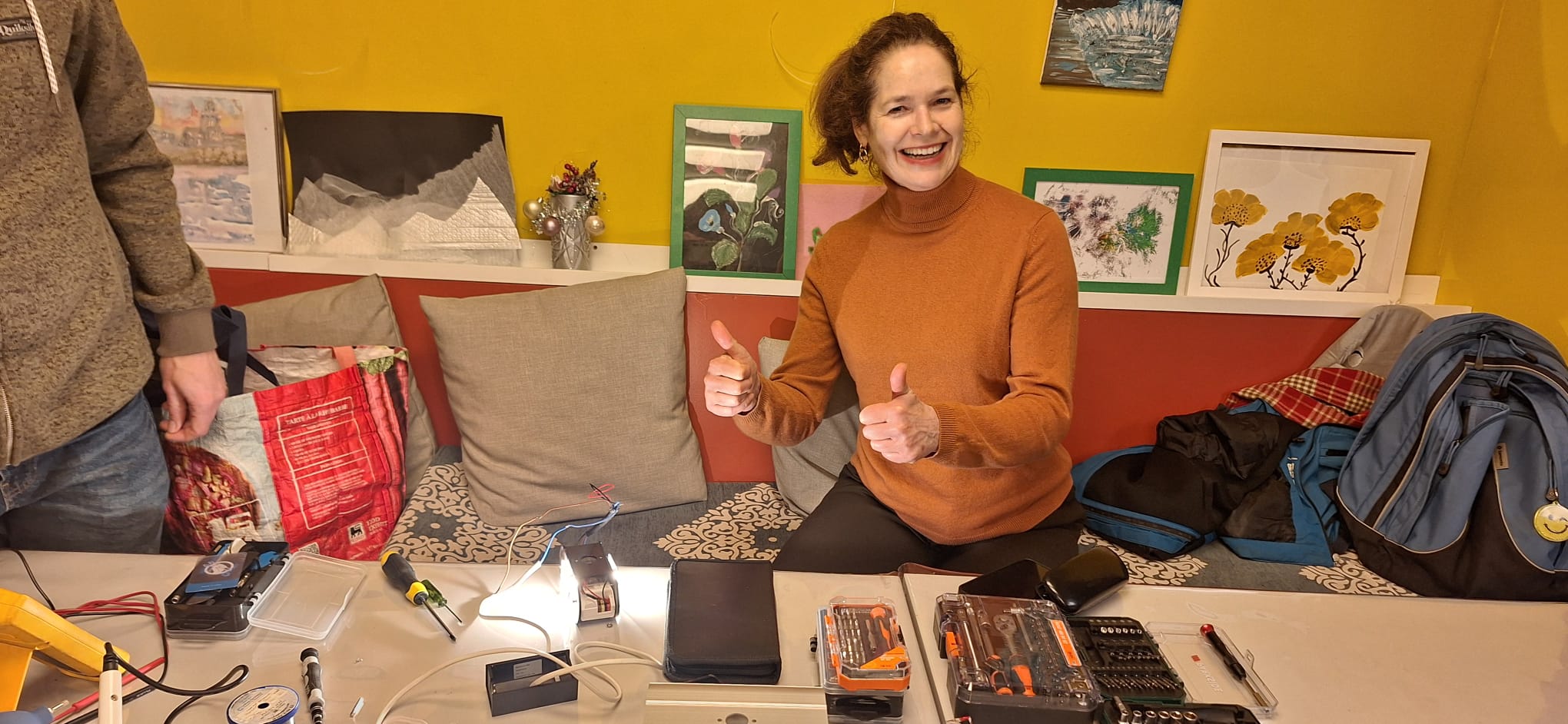 - Laat het licht niet doven: Ook grote lampenkappen en verlichting kregen aandacht. Een simpel kabelbreukje hoeft niet te betekenen dat je in het donker blijft zitten. De blije gezichten na de reparatie van de grote lampenkap waren goud waard.