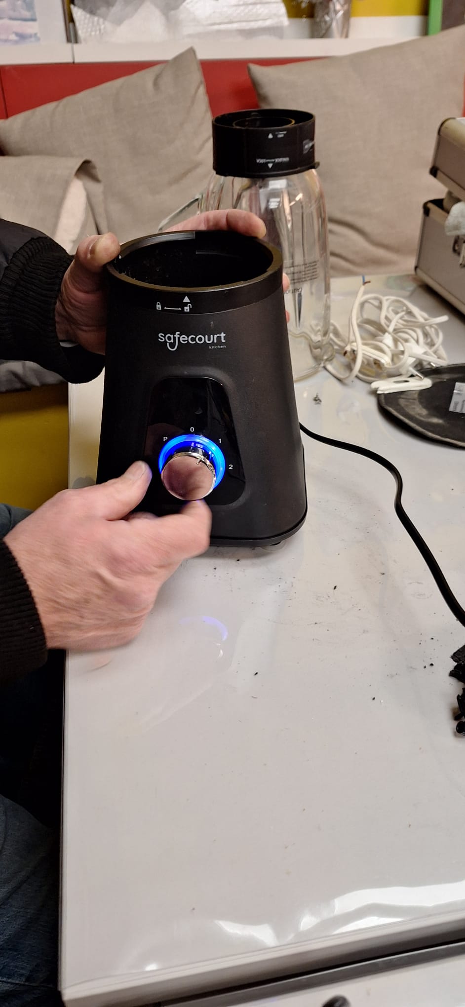 - Keukenvrienden keren terug: Zoals je op de foto’s kunt zien, gaf die ene zwarte blender de strijd niet op! Het was een klein overwinningsmoment toen de blauwe led-ring weer oplichtte. Hij is weer helemaal klaar voor verse smoothies.